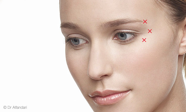 L’injection de botox sur les rides de la patte d’oie, est réalisée par 2 à 4 doses par coté de toxine.